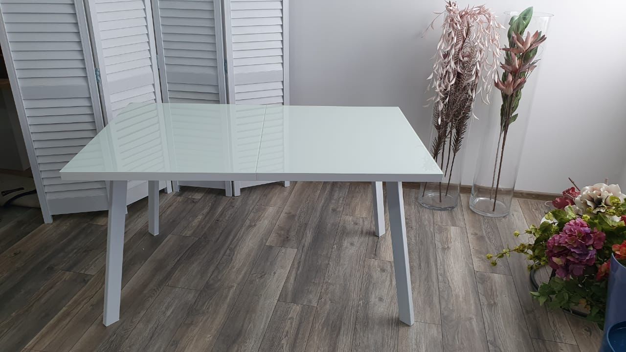 • столешница - закаленное стекло, подстолье - ЛДСП, вкладной элемент закаленное глянцевое стекло + ЛДСП в цвет основной столешницы;