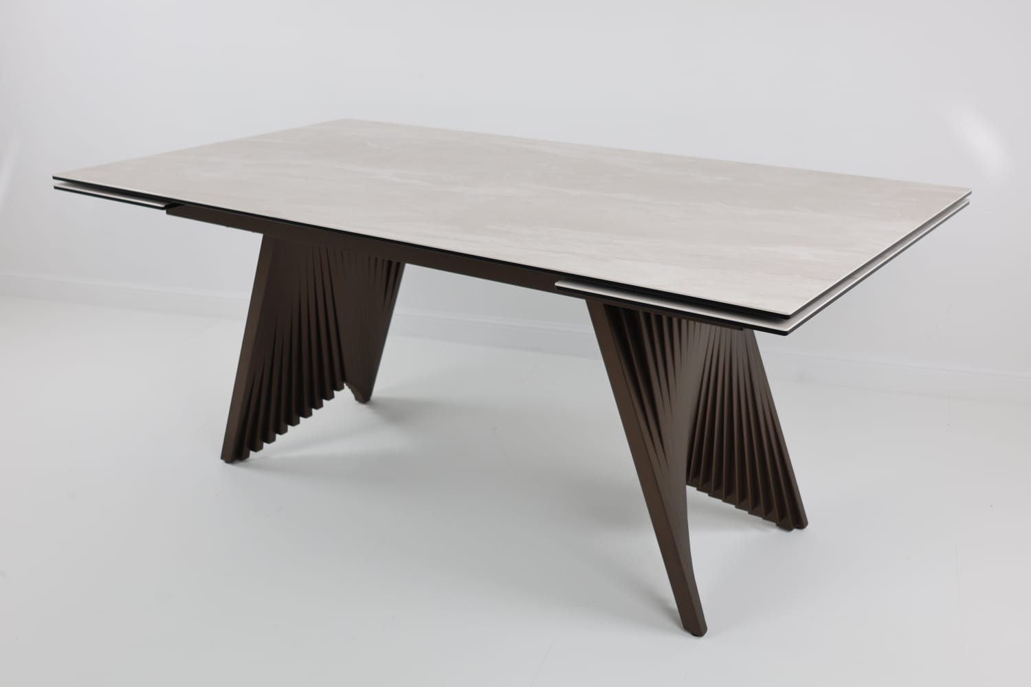 • двухсторонняя торцевая система раскладывания, две независимые вставки по 40 см позволяют увеличить длину столешницы на 220 или 260 см при необходимости;