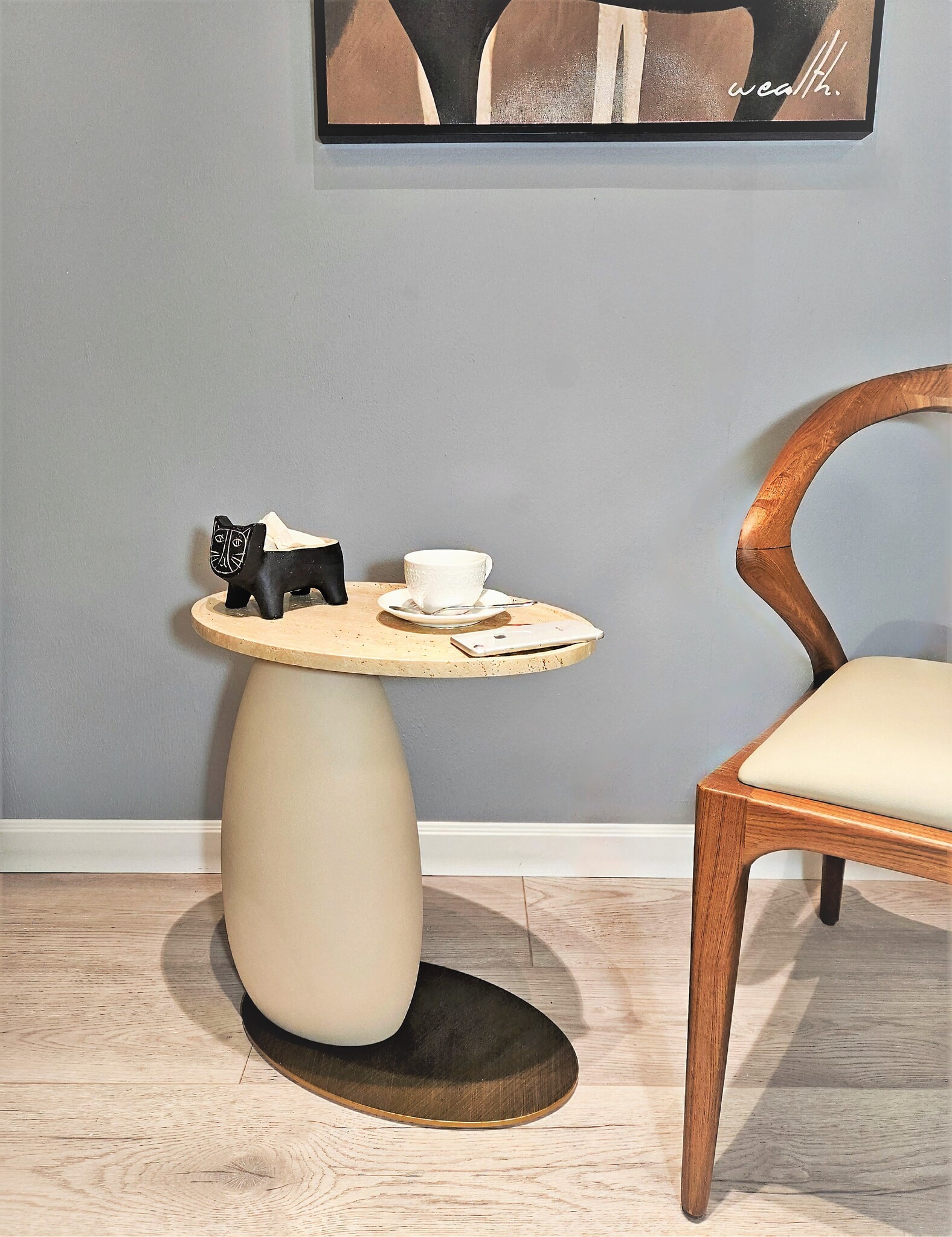 Благодаря компактным размерам стол идеально подходит даже для небольших пространств, а округлая форма придает ощущение уюта и завершенности.