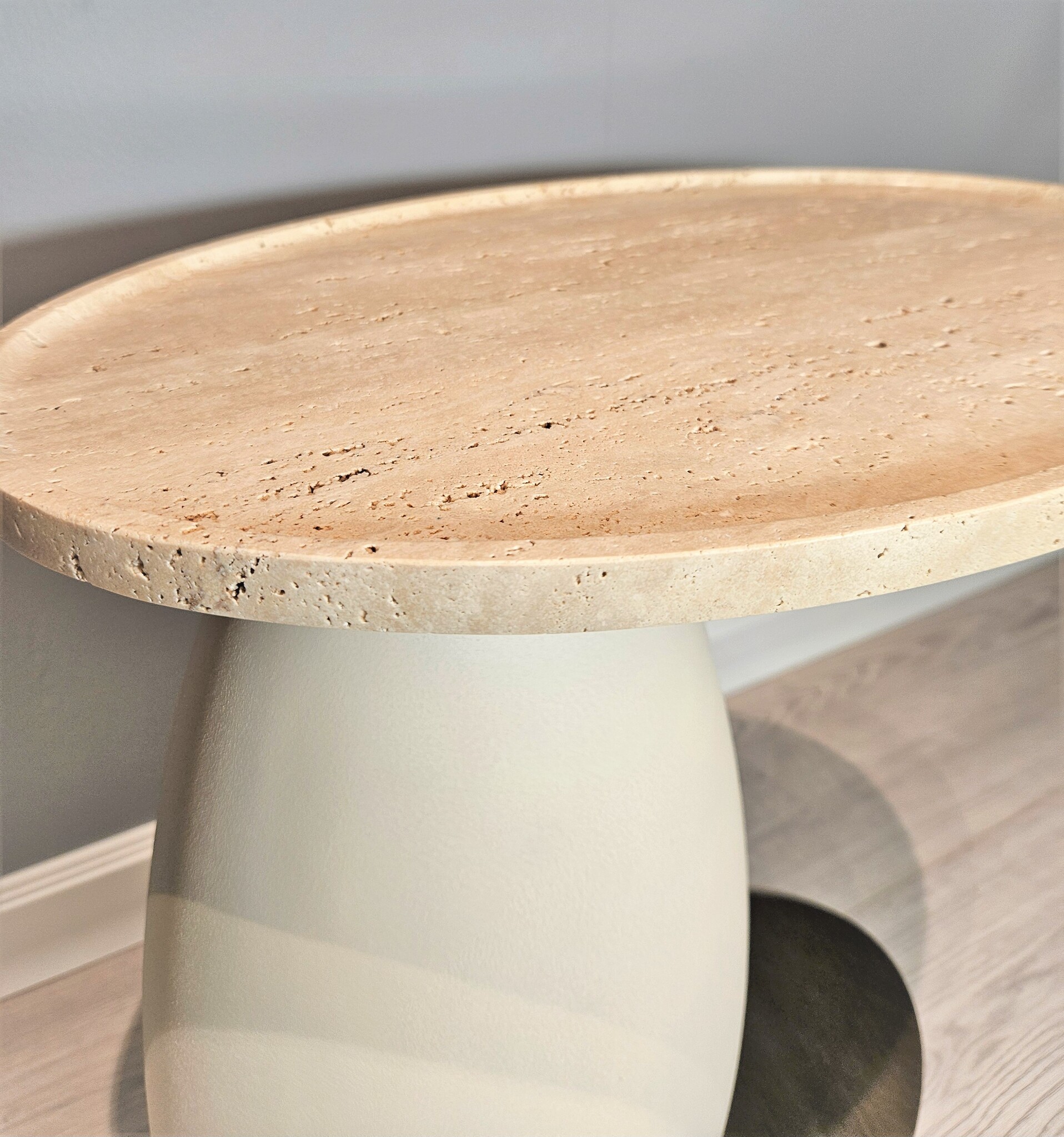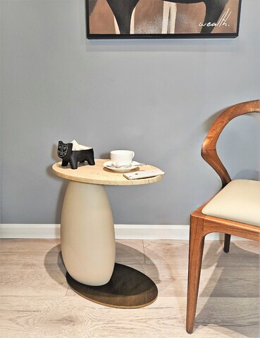 Дизайнерский кофейный столик, изготовленный из качественных материалов и украшенный столешницей из травертина, станет изысканным акцентом любого интерьера. Столик выполнен в приятном натуральном цвете, который легко гармонирует с разными цветовыми решениями.