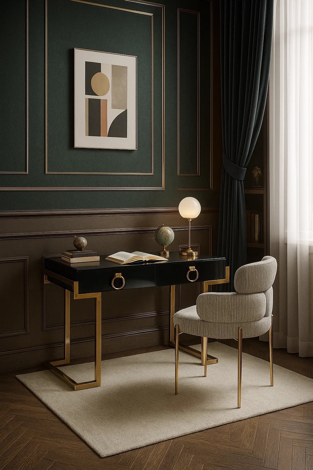 Стол-консоль Атлас МС9002-120В — это воплощение современного дизайна, практичности и элегантности. Этот дизайнерский стол-консоль идеально подходит как для прихожей, так и для гостиной или спальни, добавляя интерьеру строгости, глубины и роскоши. Модель выполнена в насыщенном черном глянцевом цвете, который придает изделию эффектный внешний вид и делает его центральным элементом любого пространства. Поверхность изготовлена из высококачественного МДФ с покрытием, устойчивым к царапинам, влаге и загрязнениям. Такая отделка создает ощущение драгоценности и легко вписывается как в светлые, так и в темные интерьеры. Особенностью модели являются выдвижные ящики, которые обеспечивают удобное хранение аксессуаров, документов, ключей, украшений и других мелких предметов. Это делает консоль особенно полезной в роли туалетного столика, рабочего места или декоративного элемента с дополнительной вместимостью. Каркас выполнен из нержавеющей стали с покрытием цвета глянцевое золото, что обеспечивает долговечность конструкции и контрастирует с темной столешницей, создавая эффект современной роскоши. Размеры 120×60×78 см обеспечивают комфортную ширину и удобство размещения даже в небольших помещениях. Благодаря своей универсальности, консоль может использоваться как в домашней обстановке, так и в коммерческих интерьерах. Этот стол-консоль станет стильным и функциональным акцентом вашего пространства. Материал: МДФ, нержавеющая сталь Цвет: черный глянцевый, глянцевое золото Размер: 120x60x78 см 1шт/2корбки Размер упаковки: 118x65x20; 81x29x64 см Вес нетто: 36,40кг Вес брутто: 40,60кг Гарантия 1 год