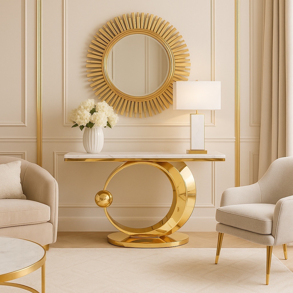 Стол-консоль Дрим IST-800,120х40х78 см, белый бентли/золотой