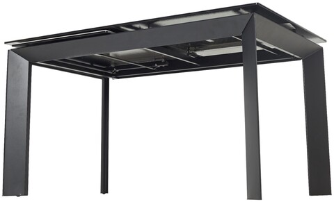 • основание стола - металл, цвет - черный, ножки стола расположены по углам столешницы под углом;