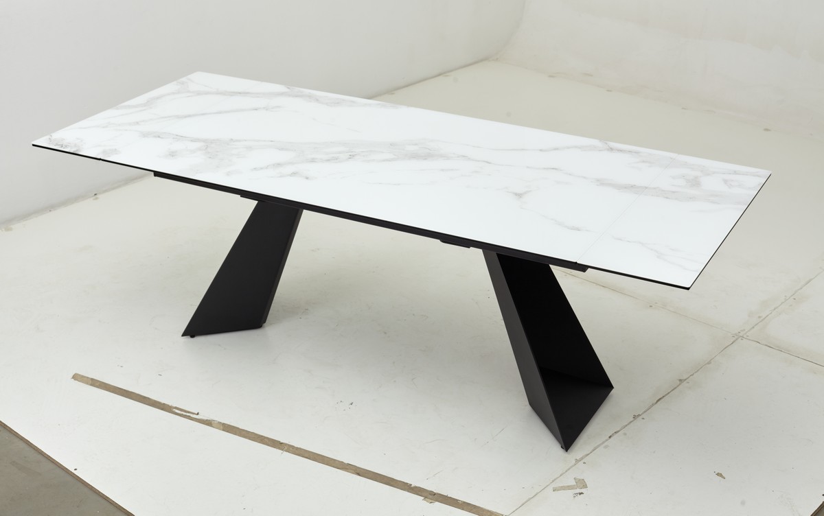 Стол Купер 160 БЕЛЫЙ МРАМОР, черная шагрень, стекло / ЧЕРНЫЙ