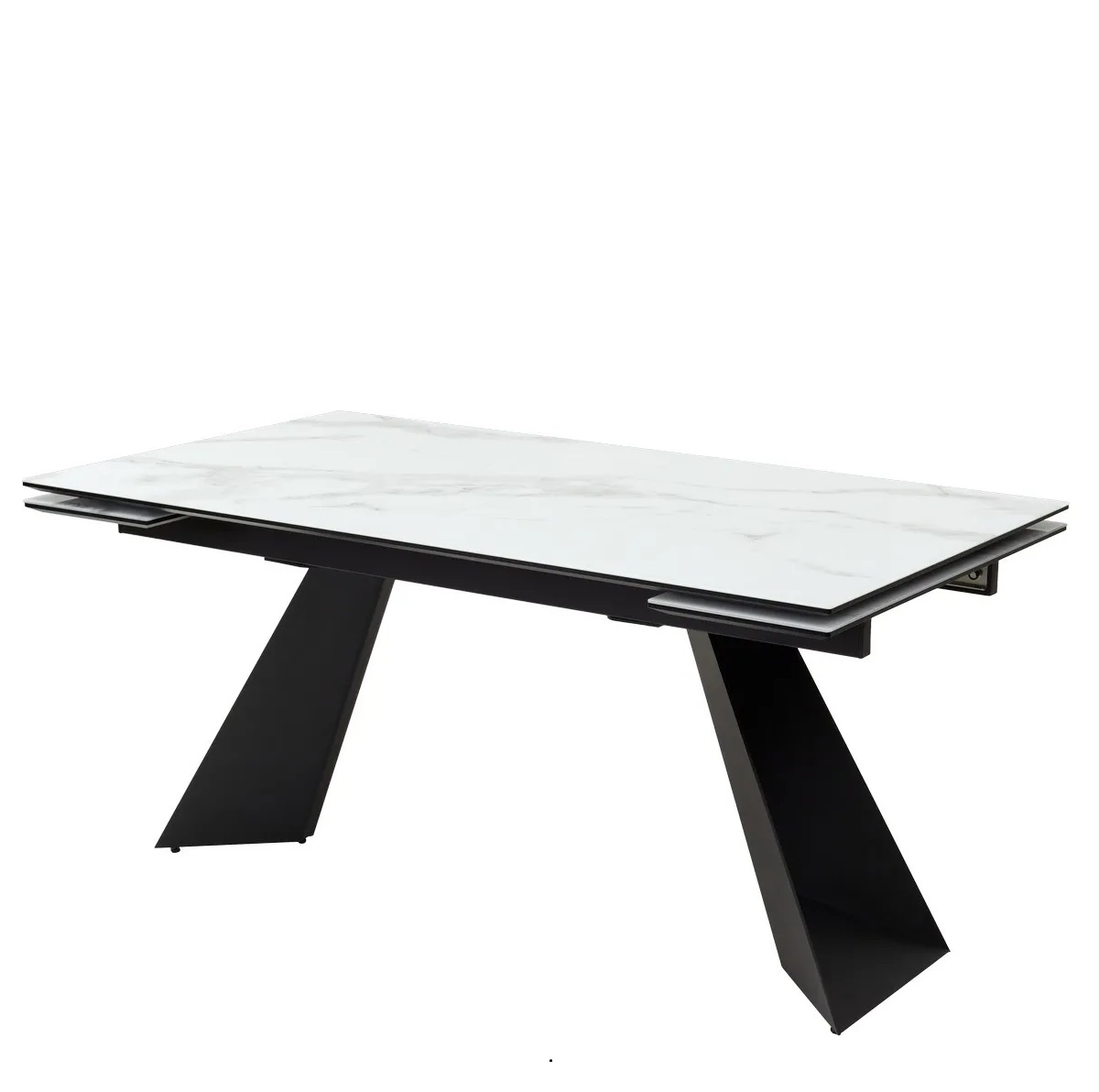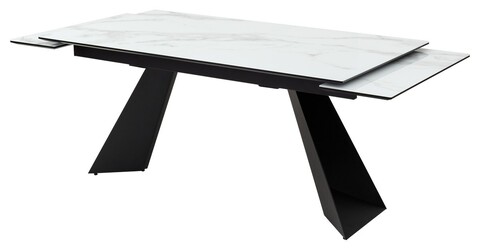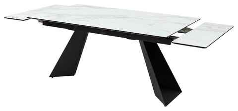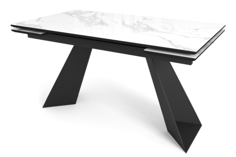 Стол Купер 160 БЕЛЫЙ МРАМОР, черная шагрень, стекло / ЧЕРНЫЙ каркас М-City