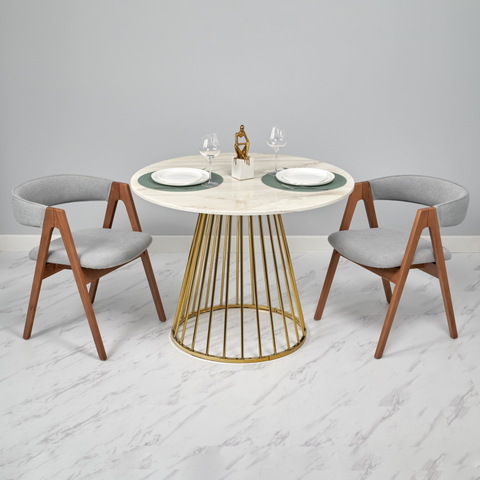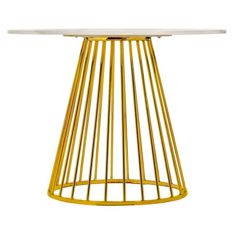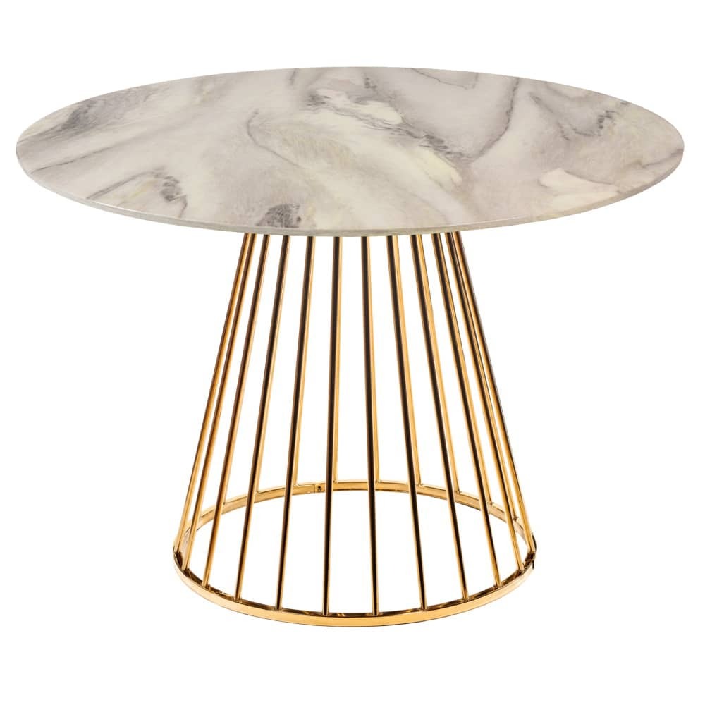 Стол Liverpool диам.100см, керамогранит белый мрамор с золотистыми ножками