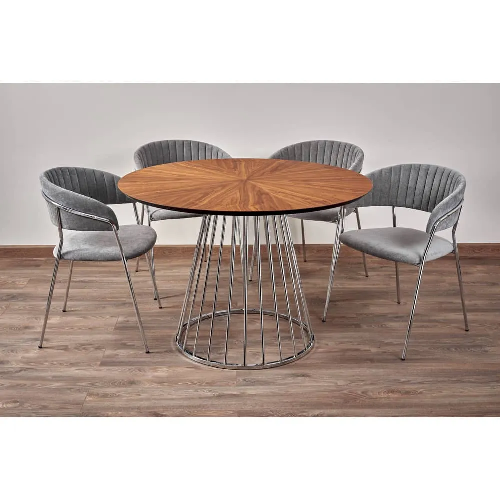 Стол Liverpool диам.110см, шпон орех лучевой набор, с хромированными ножками