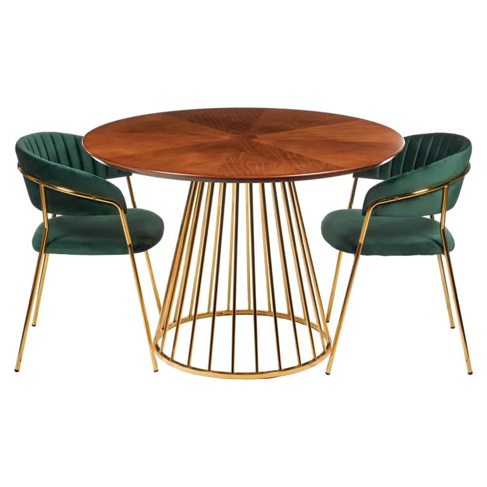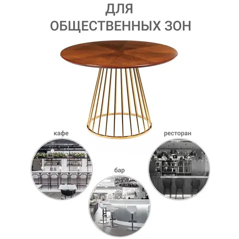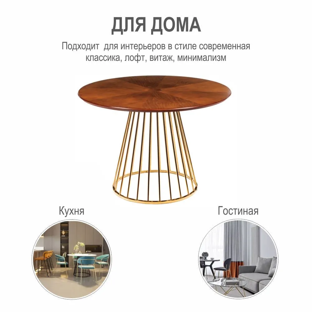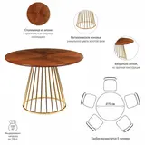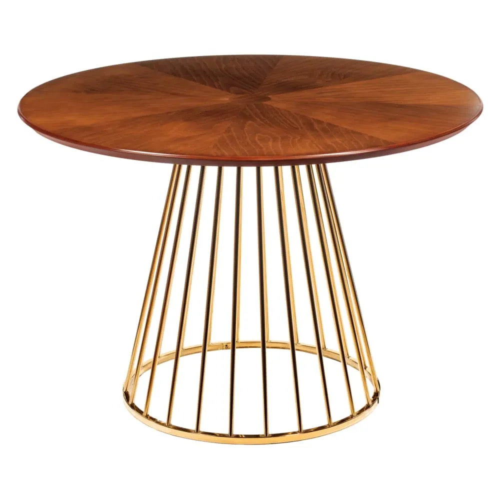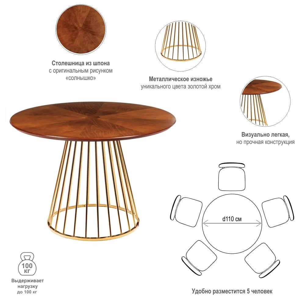 Стол Liverpool диам.110см, шпон орех "солнышко" с золотистыми ножками