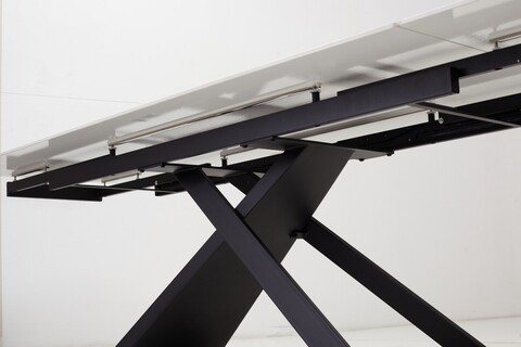 • двухсторонняя торцевая система раскладывания, две независимые вставки по 40 см позволяют увеличить длину столешницы на 220 или 260 см при необходимости;
