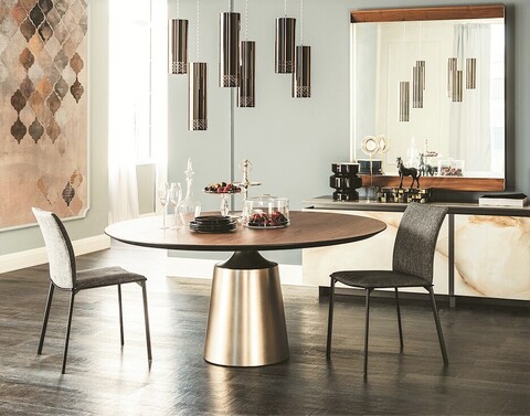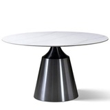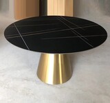 Стол представлен в двух вариантах: - черный керамогранит, поверхность матовая; - белый керамогранит, поверхность глянцевая. Основа из металла в цвете латунь браш. Стол комфортно позволит разместить 6 персон.