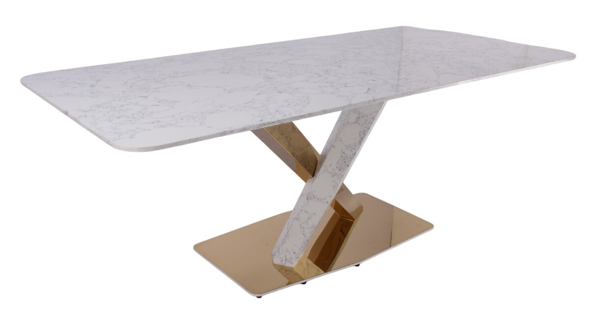 Стол обеденный Интерно Гранд MC3042-200WH, 200х100х75 см, белый мрамор/золото
