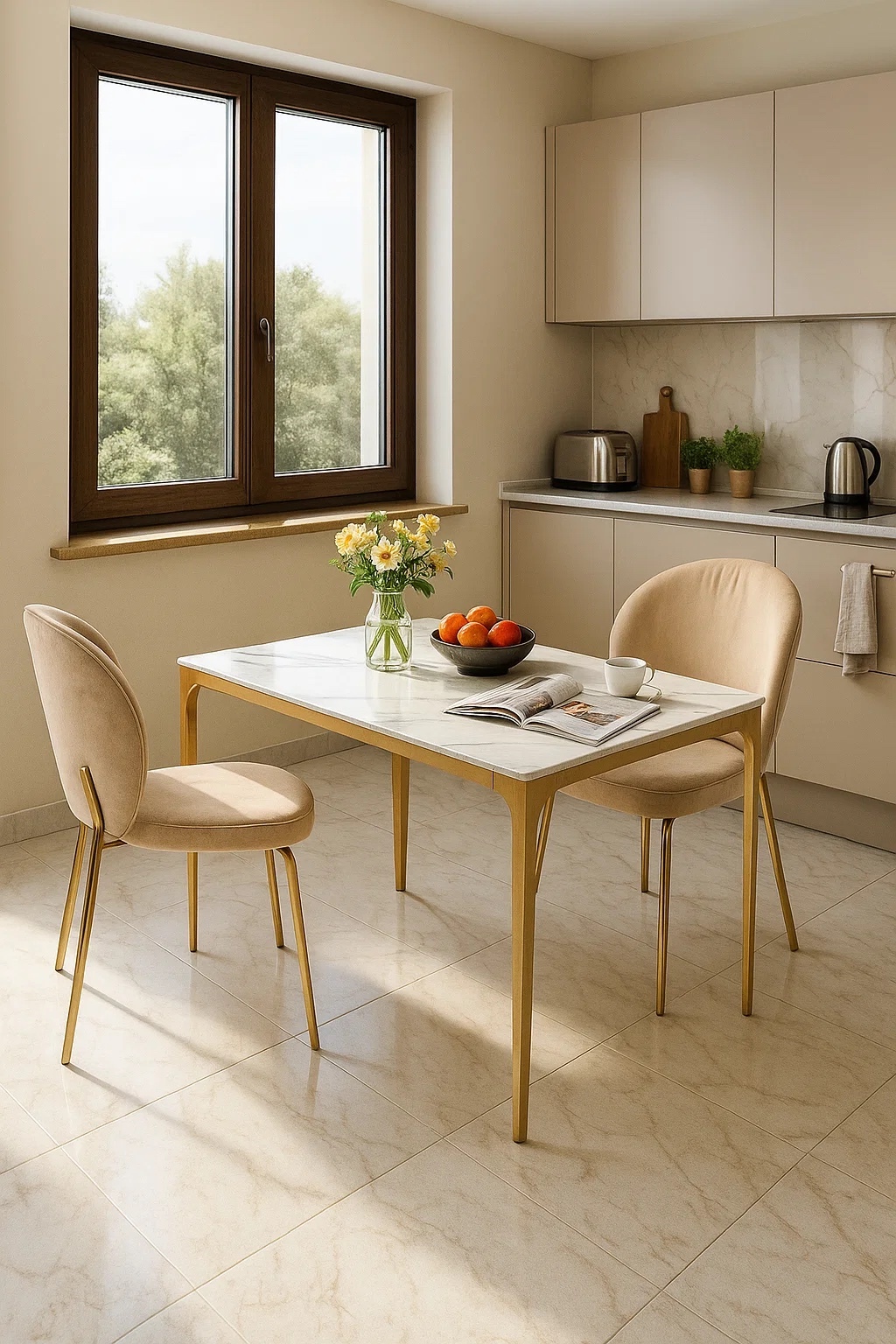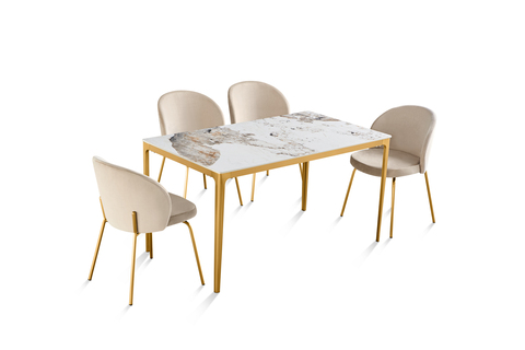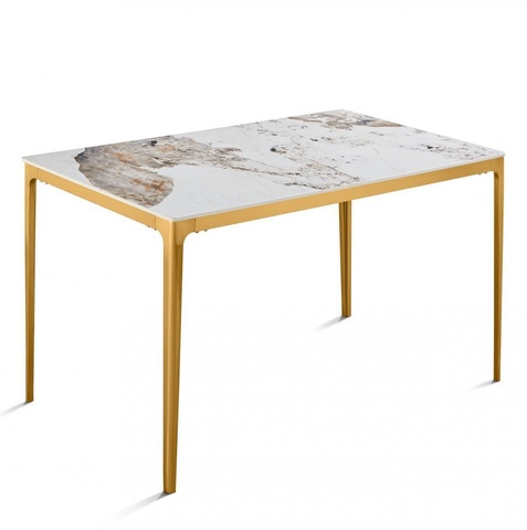Стол обеденный Столешница: керамогранит (12мм), цвет: белый мрамор (Статуарио) Ножки из нержавеющей стали с золотым порошковым окрашиванием 120х80х76 см Страна производитель: Китай Вес нетто 37,50 кг Вес брутто 45,30 кг Объем 0,207 1/2 Размер упаковки: 134*95*15 см, 77*29*28 Гарантия 1 год