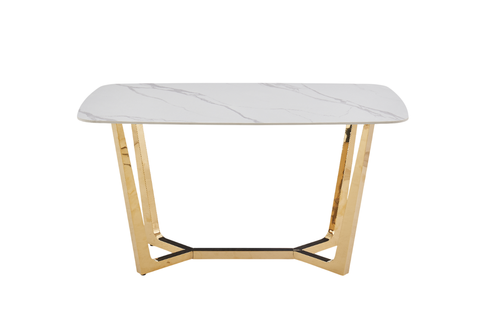 Стол обеденный Ланс DT-2852, 140х80х75 см, белый мрамор Статуарио/глянцевое золото
