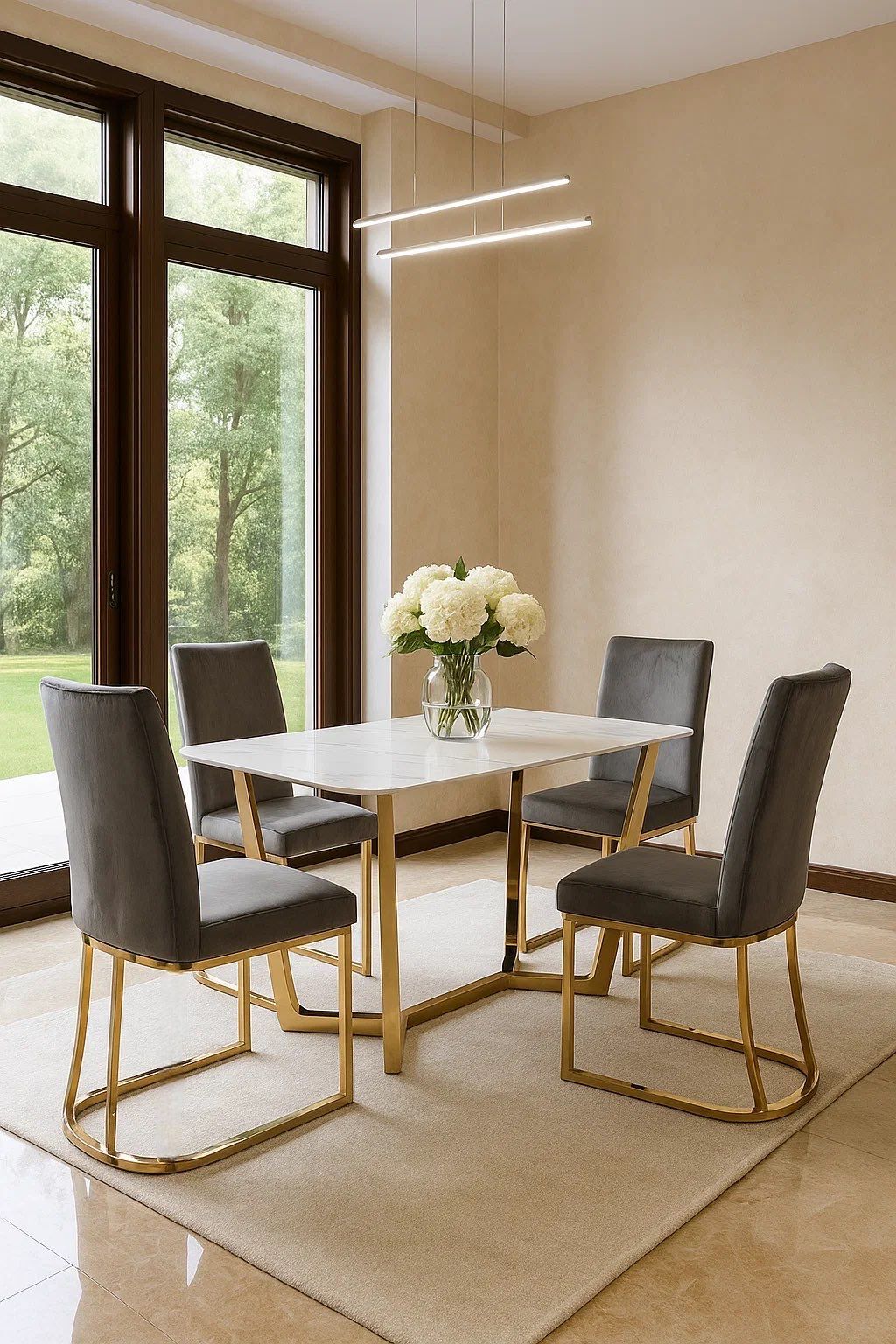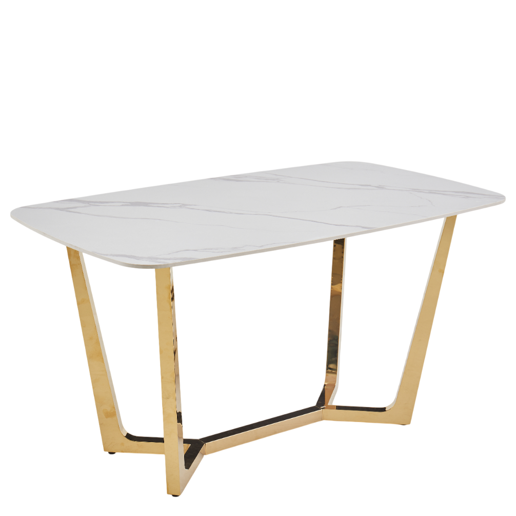 Стол обеденный Ланс DT-2852XS, 120х80х75 см, белый мрамор Статуарио/глянцевое золото