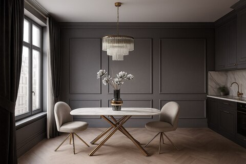 Дизайнерский прямоугольный обеденный стол с закругленными углами и столешницей из керамогранита, золотые металлические ножки Стол обеденный Неаполь Голд TW1162-T-1 — это элегантное сочетание современного дизайна и высокой прочности материалов. Дизайнерский стол создан для тех, кто ценит стиль, комфорт и долговечность в деталях интерьера. Модель выполнена в лаконичном формате: прямоугольный обеденный стол с закругленными углами обеспечивает безопасность и удобство как в повседневном, так и в торжественном использовании. Центральной особенностью стола является столешница из керамогранита, имитирующая благородную текстуру натурального камня. Этот материал отличается высокой устойчивостью к царапинам, перепадам температур, загрязнениям и не требует сложного ухода. Цвет столешницы — насыщенный серо-золотистый, что придает изделию роскошный вид и позволяет ему гармонично сочетаться с различными стилями интерьера: от классики до современного минимализма. Каркас изготовлен из прочного металла с покрытием глянцевое золото, которое выглядит богато и подчеркивает статус помещения. Такие обеденные столы с металлическими ножками цвета глянцевое золото станут ярким акцентом любого пространства. Благодаря качественной сборке и использованию долговечных материалов, стол сохраняет свою форму и внешний вид даже при интенсивной эксплуатации. Размер: 160x90x76 см Столешница керамогранит, ножки металлические цвет глянцевое золото 1шт/2кор 170х100х8см 126х55х12 см Гарантия 1 год