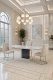 Дизайнерский обеденный раскладной стол Хлое MC22027DT – это идеальное сочетание роскоши и функциональности. Прямоугольный раскладной стол в современном стиле с белоснежной керамической поверхностью под мрамор и стильным металлическим основанием легко адаптируется под любые ситуации – от повседневных обедов до торжественных ужинов. Конструктивные особенности: - Комбинированная столешница из испанской белой керамики 3 мм и закаленного стекла 8 мм – прочность и визуальная легкость. - Пьедестал из коричневого МДФ – устойчивость и теплый контраст с белой столешницей. - Основание из полированной нержавеющей стали – современный блеск и долговечность. - Размеры 180(260)×95×76 см – компактный в сложенном виде, просторный в разложенном состоянии. 5 причин выбрать этот стол: 1. Практичность – легко трансформируется под разные ситуации 2. Долговечность – качественные материалы и продуманная конструкция 3. Универсальность – подходит для кухонь, столовых, гостиных 4. Легкость ухода – керамическая поверхность не требует специального ухода 5. Стильный дизайн – сочетание белого мрамора, дерева и металла Стол Хлое MC22027DT – это выбор тех, кто ценит в мебели функциональность, качество и современный дизайн. Продуманная конструкция и благородные материалы сделают его центральным элементом вашей столовой. Стол обеденный раскладной Размер:180(40+40)*95*76 см Столешница: 3мм испанская белая керамика +8 мм закаленное стекло Пьедестал: коричневый МДФ Основание: полированная нержавеющая сталь Упаковка: 1шт/3кор 1880*1030*205 - 0,396м3 580*300*650 - 0,113 м3 980*550*80 - 0,043 м3 Гарантия 1 год