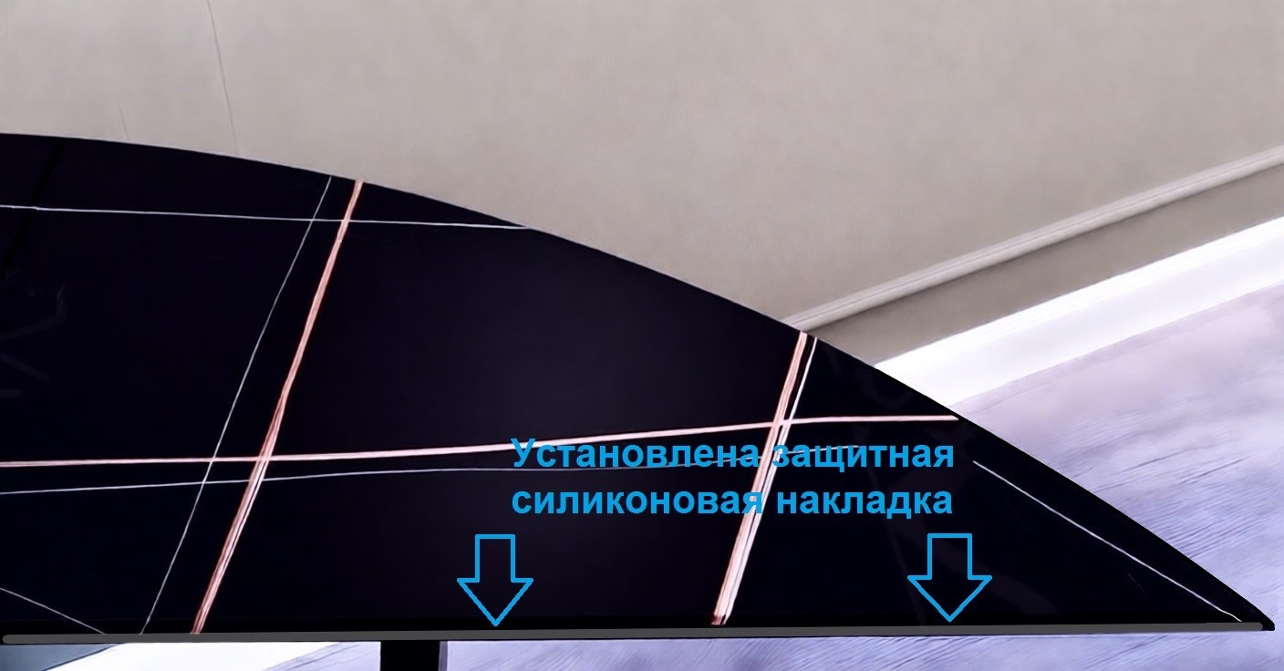 Поверхность столешницы матовая, цвет черный с серо-коричневыми линиями.