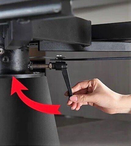 Рычаг, расположенный под столешницей позволяет фиксировать стол в нужном положении (открывает и закрывает механизм).