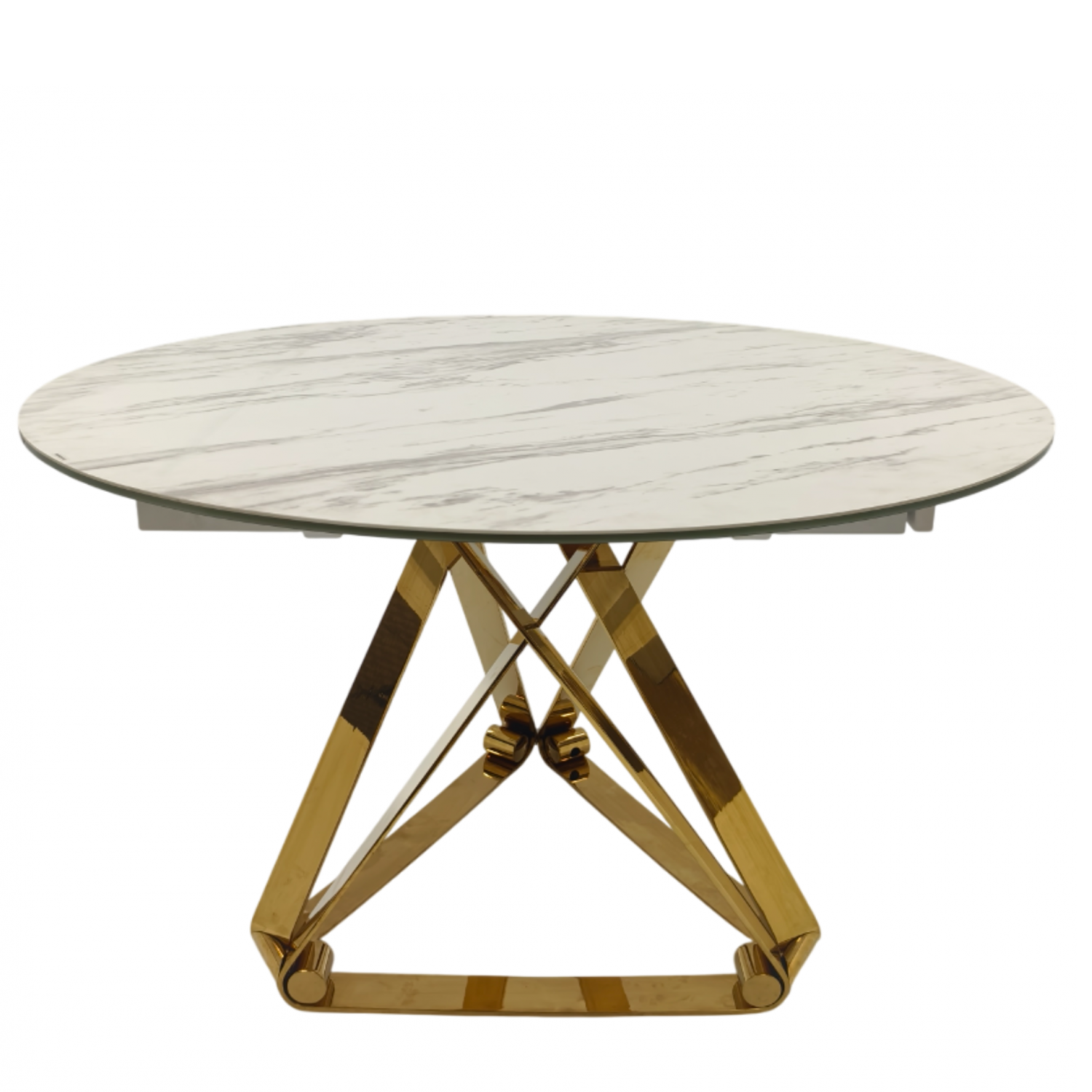 Стол обеденный раскладной Рондо Голд MC8239-120W, 120(+30+30)х76 см, белая керамика/золото