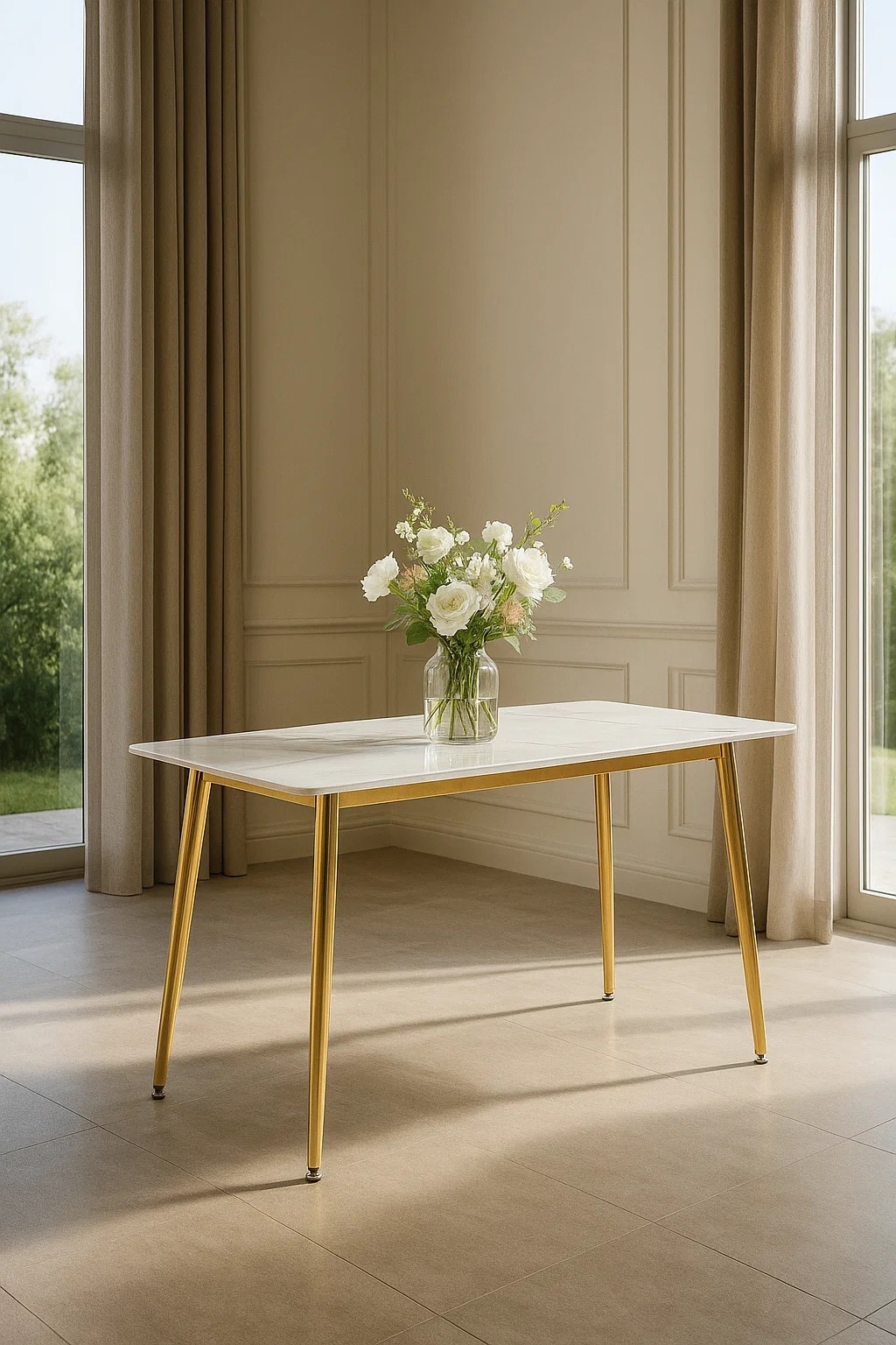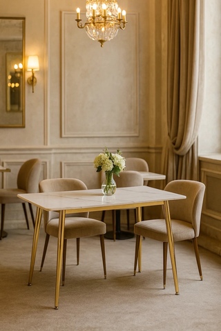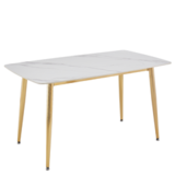 Стол обеденный Рио Голд DT-2849, 140х80х76 см, белый мрамор Статуарио/глянцевое золото
