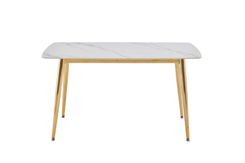 Стол обеденный Рио Голд DT-2849, 160х90х76 см, белый мрамор Статуарио/глянцевое золото
