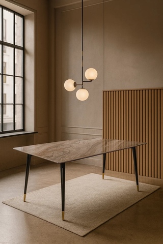 Стол обеденный Рио Гранд MC232-180BR — это воплощение современной эстетики и продуманности деталей. Этот обеденный дизайнерский стол станет ярким акцентом в интерьере, подчеркивая утонченность вкуса владельца и создавая атмосферу роскоши. Модель выполнена в строгой прямоугольной форме. Размеры 180×90 см обеспечивают комфортную посадку до 8 человек, идеально подходят как для повседневных семейных трапез, так и для торжественных случаев. Главной особенностью стола является столешница из испанской коричневой керамики (6 мм) на закаленном стекле (6 мм) — материал, сочетающий в себе прочность, устойчивость к царапинам и перепадам температур, а также глубокую текстуру, напоминающую натуральный камень. Коричневый оттенок придает интерьеру теплоты и благородства, особенно выгодно смотрятся в сочетании со светлыми стенами или деревянными элементами. Каркас изготовлен из прочного металла с покрытием черное глянцевое окрашивание, что добавляет модели строгости и современности. Дополнительным декоративным акцентом служат металлические золотые наконечники на ножках, создающие контраст с темной столешницей и усиливающие эффект роскоши. Этот обеденный стол органично впишется в стиль лофт, гламур или современная классика. Он одинаково уместен как в домашней обстановке, так и в пространствах премиум-класса: ресторанах, бутиках, офисах или загородных домах. Размер: 180х90х76 см Столешница: испанская керамика 6мм на закаленном стекле 6мм Цвет: коричневый мрамор Ножки: металл с черным глянцевым окрашиванием с золотыми металлическими наконечниками Вес нетто/брутто: 61,40/66,20 кг 1шт/2 кор Гарантия 1 год