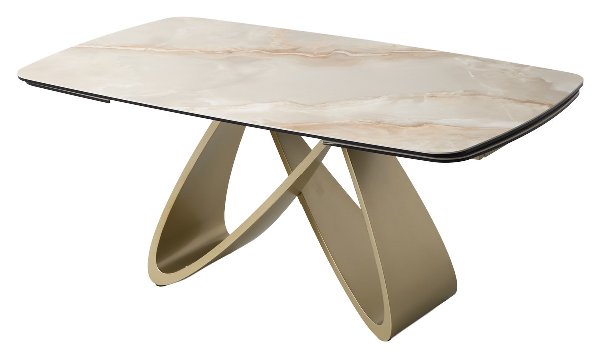 Стол ПАЛАСИО (PALACIO) 180 цвет ГРАНД ЖАДЕ (GLOSS GRAND JADE), керамика на стекле/ ШАМПАНЬ, ®DISAUR