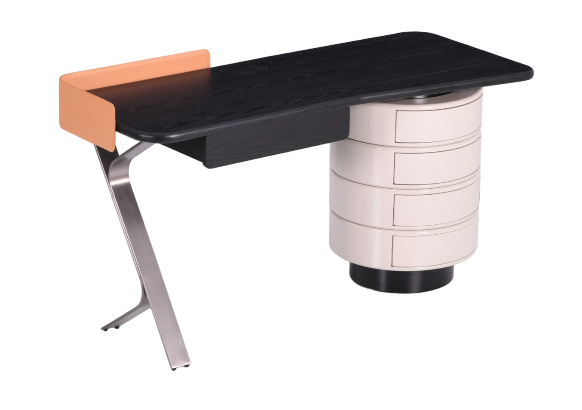 Современный, дизайнерский стол в стиле лофт – идеальное решение для вашего кабинета или офиса! Изящное сочетание шпона белого дуба, стали и экокожи придаёт мебели изысканный вид и долговечность. Пять вместительных ящиков обеспечивают дополнительное пространство для хранения необходимых вещей.