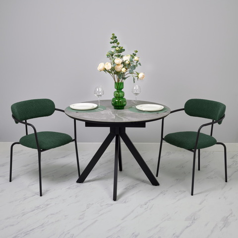 Стол Rudolf круглый раскладной 100-130x100x75см, серый керамогранит, черный