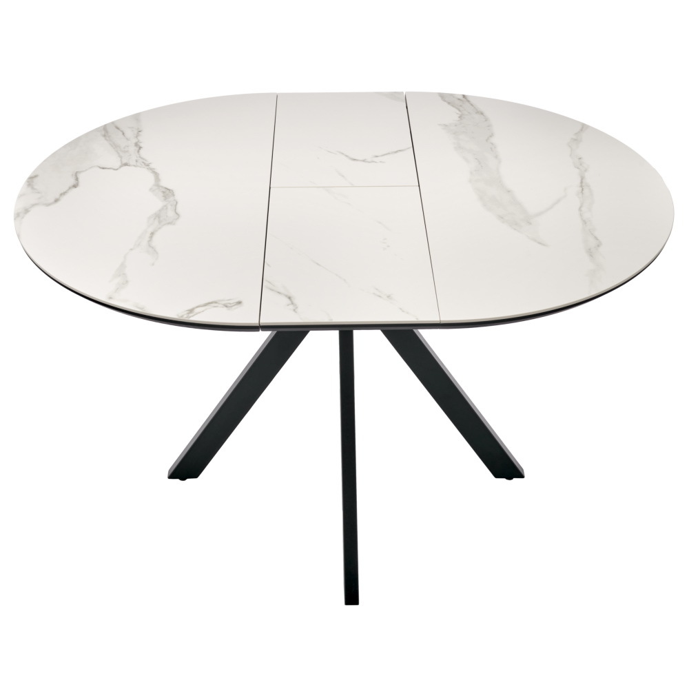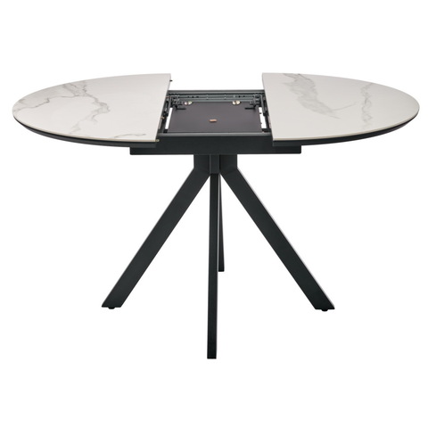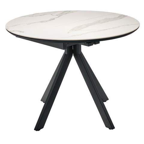 Стол Rudolf круглый раскладной 100-130x100x75см, светлый керамогранит, черный