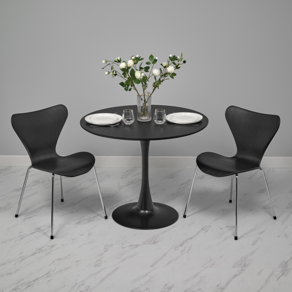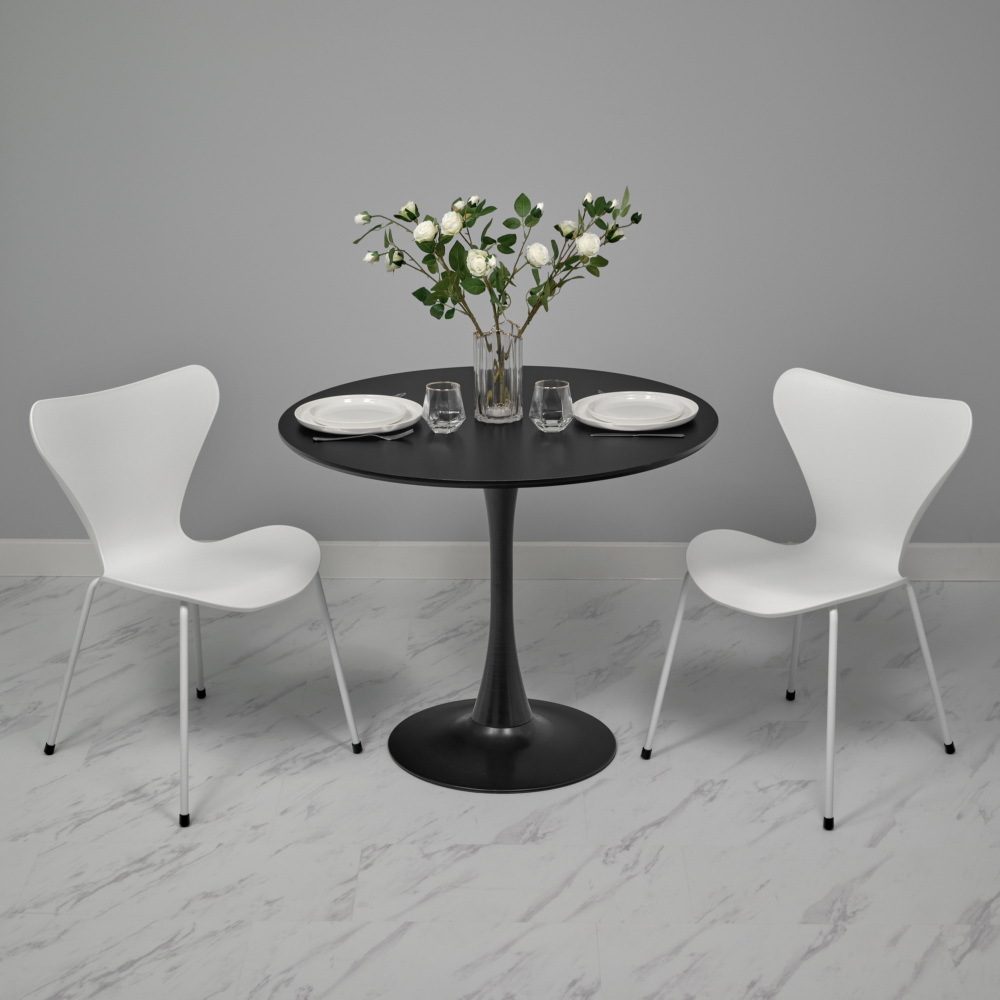 Спецификация: Материал: МДФ, металл Размер: 90 х 90х 76,5см Толщина столешницы: 25мм Диаметр основания 50см. Вес: 13,75кг Цвет: черный Максимальная нагрузка 100кг Поставляется в разобранном виде (3 коробки). В комплекте идёт инструкция и комплект аксессуаров для сборки.