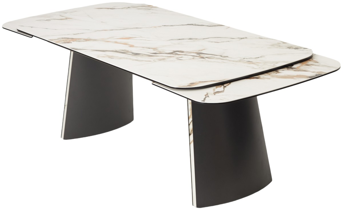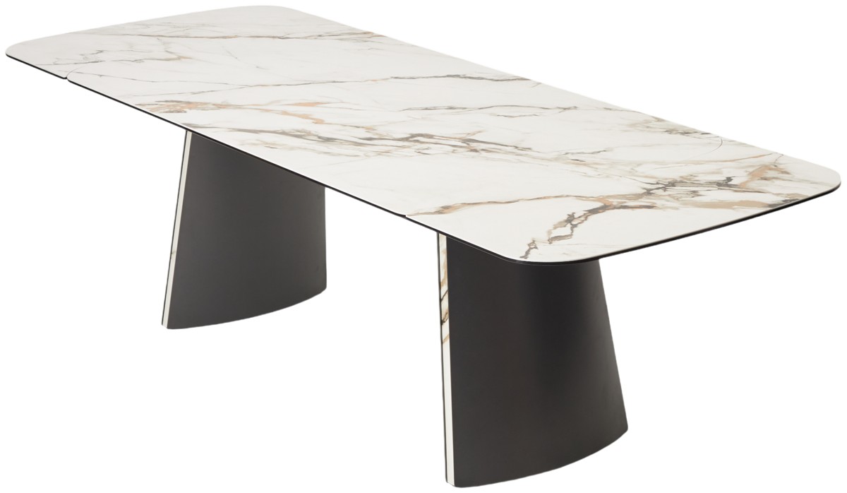• двухсторонняя торцевая система раскладывания, две независимые вставки по краям по 40 см позволяют увеличить длину столешницы на 220 или 260 см при необходимости, итальянская керамика, толщина столешницы 11 мм (3 мм керамика + 8 мм закаленное стекло), не впитывает загрязнения, термостойкая;