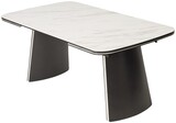 • двухсторонняя торцевая система раскладывания, две независимые вставки по краям по 40 см позволяют увеличить длину столешницы на 220 или 260 см при необходимости, итальянская керамика, толщина столешницы 11 мм (3 мм керамика + 8 мм закаленное стекло), не впитывает загрязнения, термостойкая;