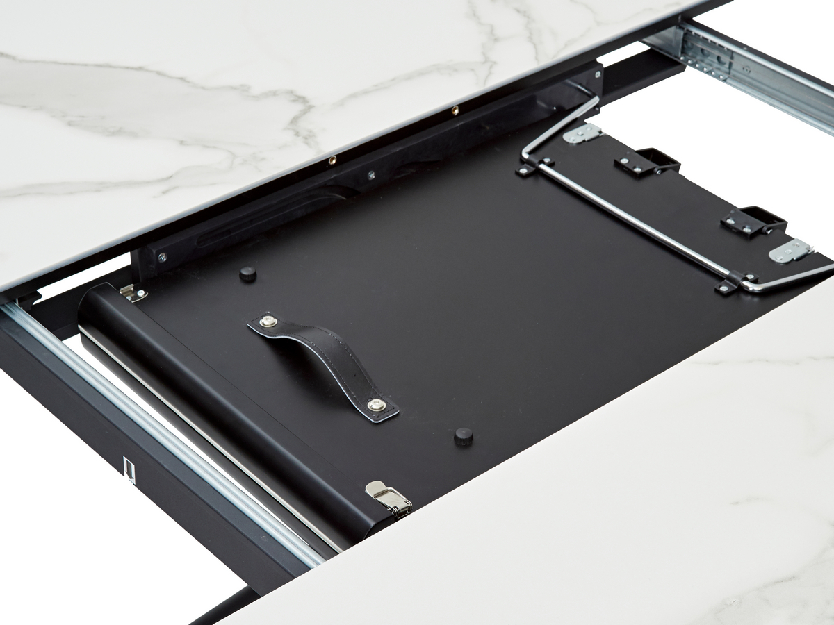• Удлиняющая вставка с керамикой "бабочка" хранится под столешницей. механизм раскладывания - "одной рукой".