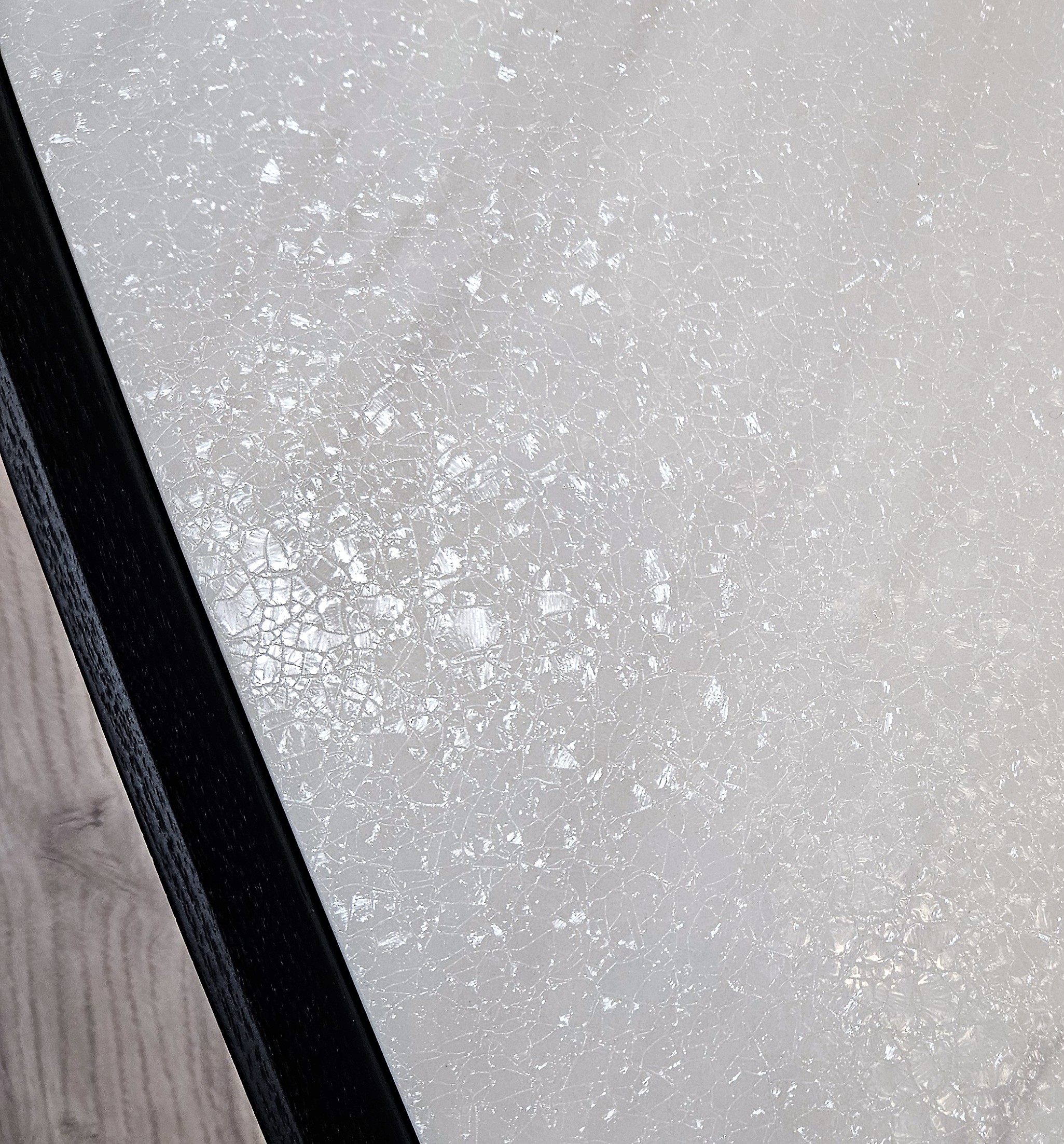 Поверхность матовая, с рельефным перламутром, украшенным тонкими линиями.