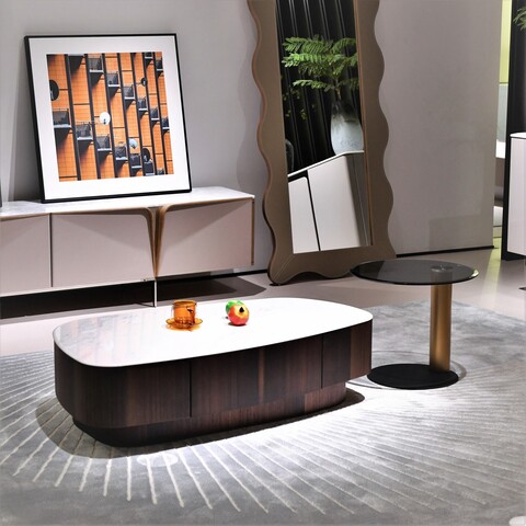 Дизайн журнального столика элегантен, а гладкая поверхность и безупречные материалы делают стол подходящим для разных стилей интерьера.
