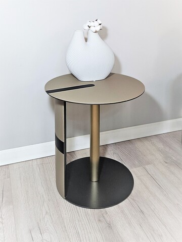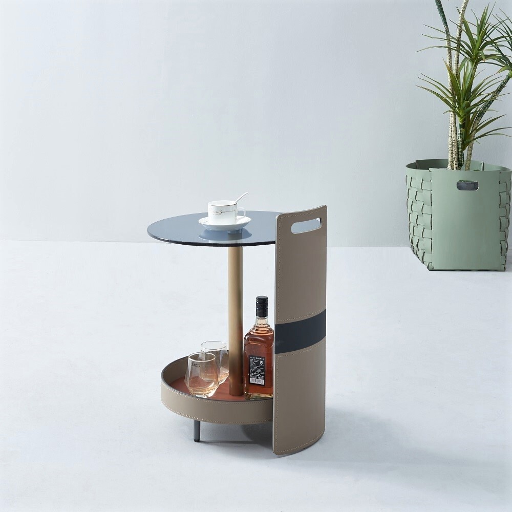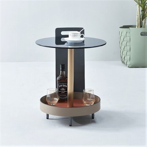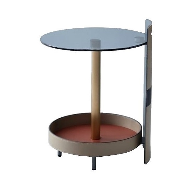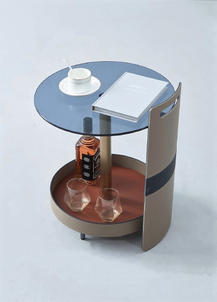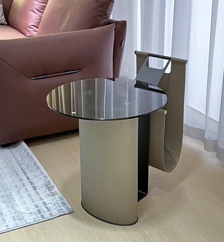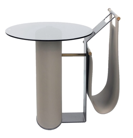 Столик выполнен из экокожи и нержавеющей стали.