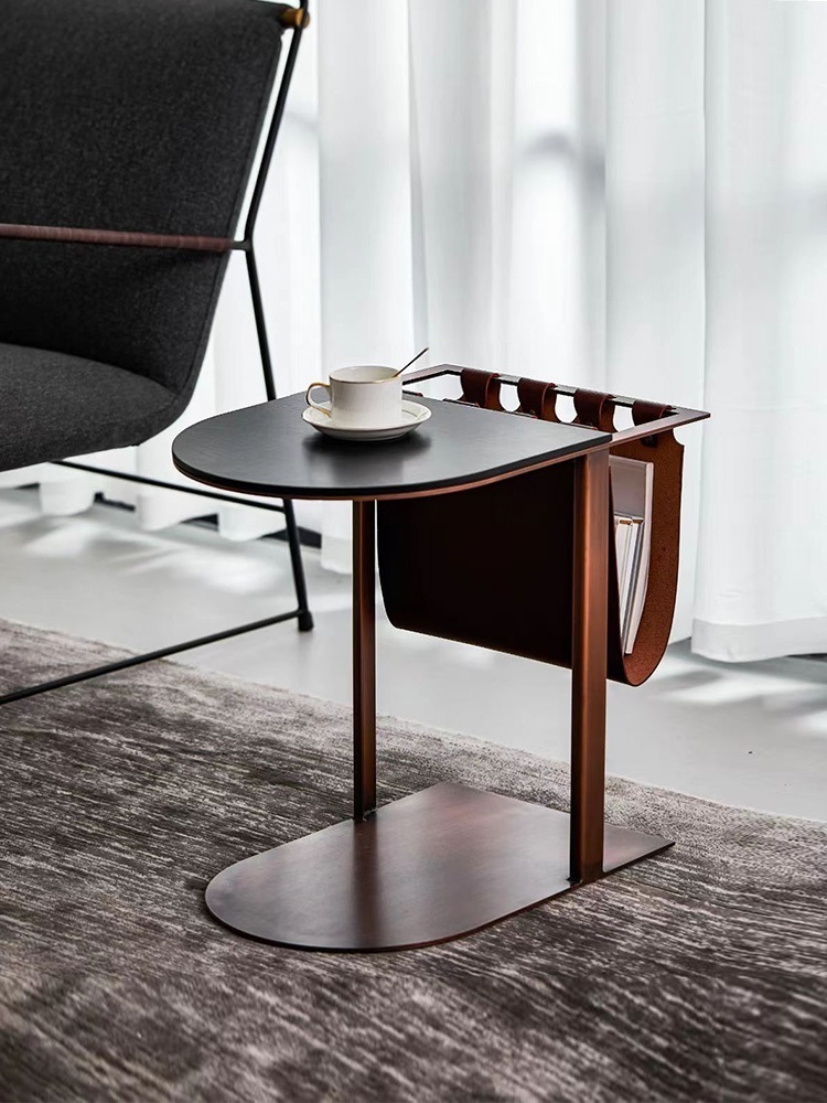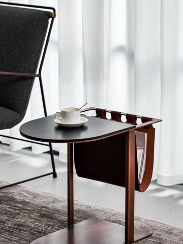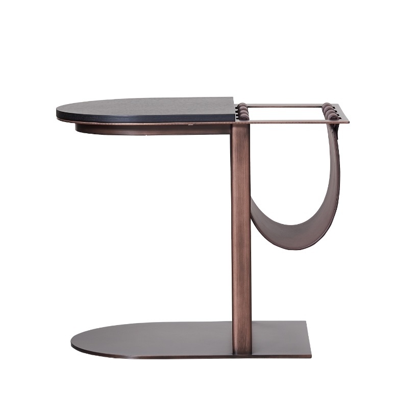 Столик журнальный на матовом металлическом основании предназначен для тех, кто любит в интерьере элегантность и изысканные материалы. Полукруглая столешница изготовлена из дерева.