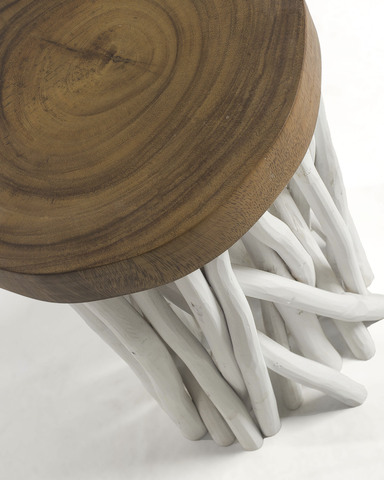 Столик Druf белый от фабрики La Forma – ветви тика и дерево альбиция в максимально естественном сочетании. Столик Druf очаровывает с первого взгляда. Здесь дизайн подсказала сама природа, а рука мастера лишь добавила несколько штрихов. Такой предмет безусловно украсит любой городской интерьер. А поклонники эко-стиля однозначно не пропустят мимо себя такую модель. Столик имеет круглую форму, изготовлен из двух видов дерева. Столешница толщиной 5 см сделана из массива альбиции. Для защиты от влаги и загрязнений, поверхность покрыта прозрачным лаком. Опора круглой формы, с диаметром 30 см. Она представляет собой сборку из ветвей тикового дерева толщиной 3 см. Ветки покрыты матовой белой эмалью, имеют наконечники для улучшения устойчивости. Максимально допустимая нагрузка на столик – 60 кг. Размеры: ширина – 35 см, высота – 50 см. Вес – 8,5 кг. Сборка не требуется.