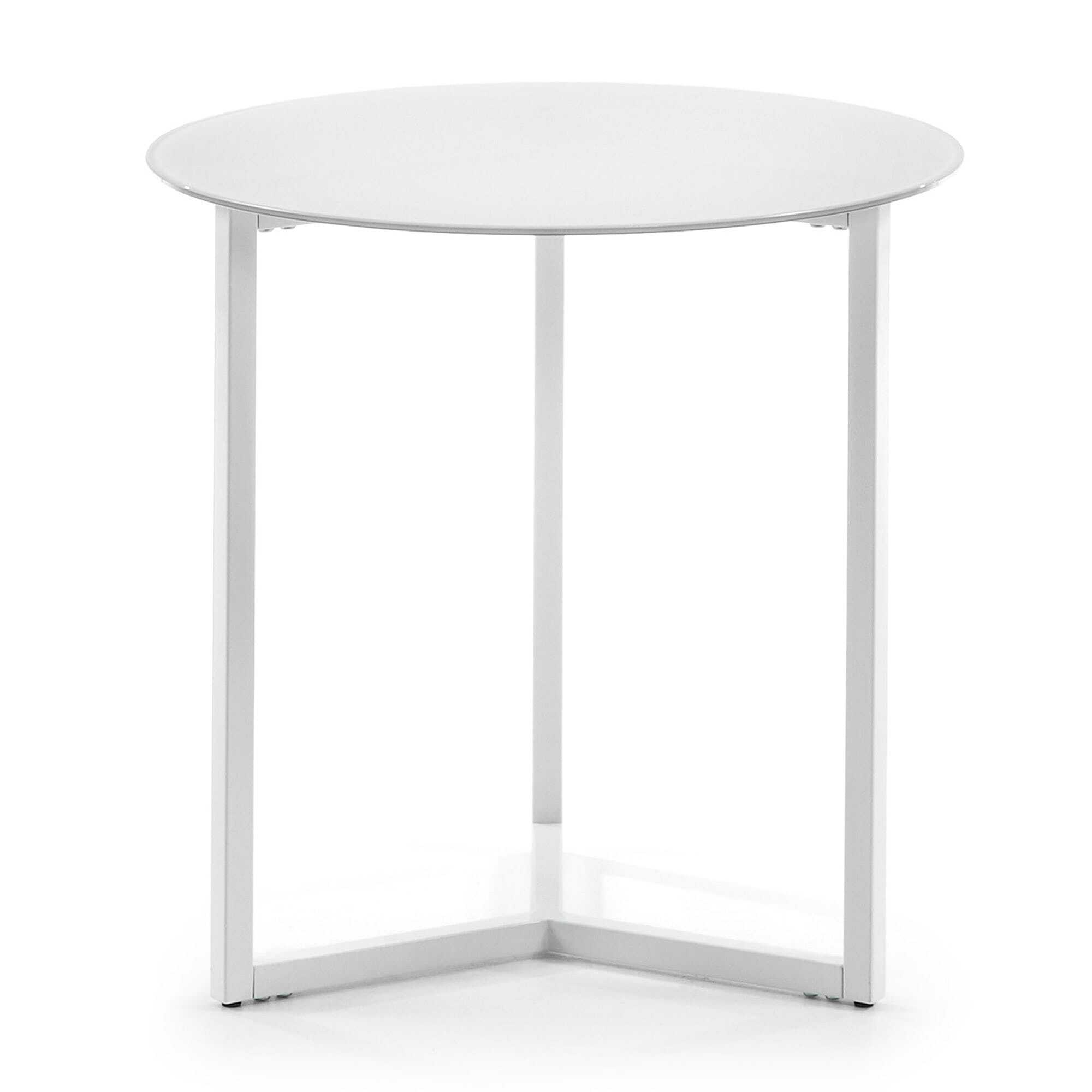 Столик Marae белый от фабрики La Forma – универсальный и компактный элемент интерьера для разных целей. Столик Marae лаконично дополнит интерьер и безусловно станет полезной вещью в доме. Круглая форма позволяет ставить его с любой стороны и в разные углы комнаты, а минималистичный дизайн и белый цвет точно подружатся с уже созданным интерьером. Столик круглый. Столешница выполнена из закаленного стекла, с белым покрытием с внутренней стороны. Удерживает столешницу металлическая опора, покрашенная в белый цвет. Она имеет рамочную конструкцию с тремя ножками по вертикали и тремя горизонтальными осями с обеих сторон. Металл обеспечивает изделию прочность, а такая форма опоры – устойчивость на любом напольном покрытии. Максимально допустимая нагрузка на изделие – 15 кг. Размеры: ширина – 50 см, глубина – 50 см, высота – 49,5 см. Вес изделия составляет 4,8 кг. Потребуется сборка, которая займет 15 минут.