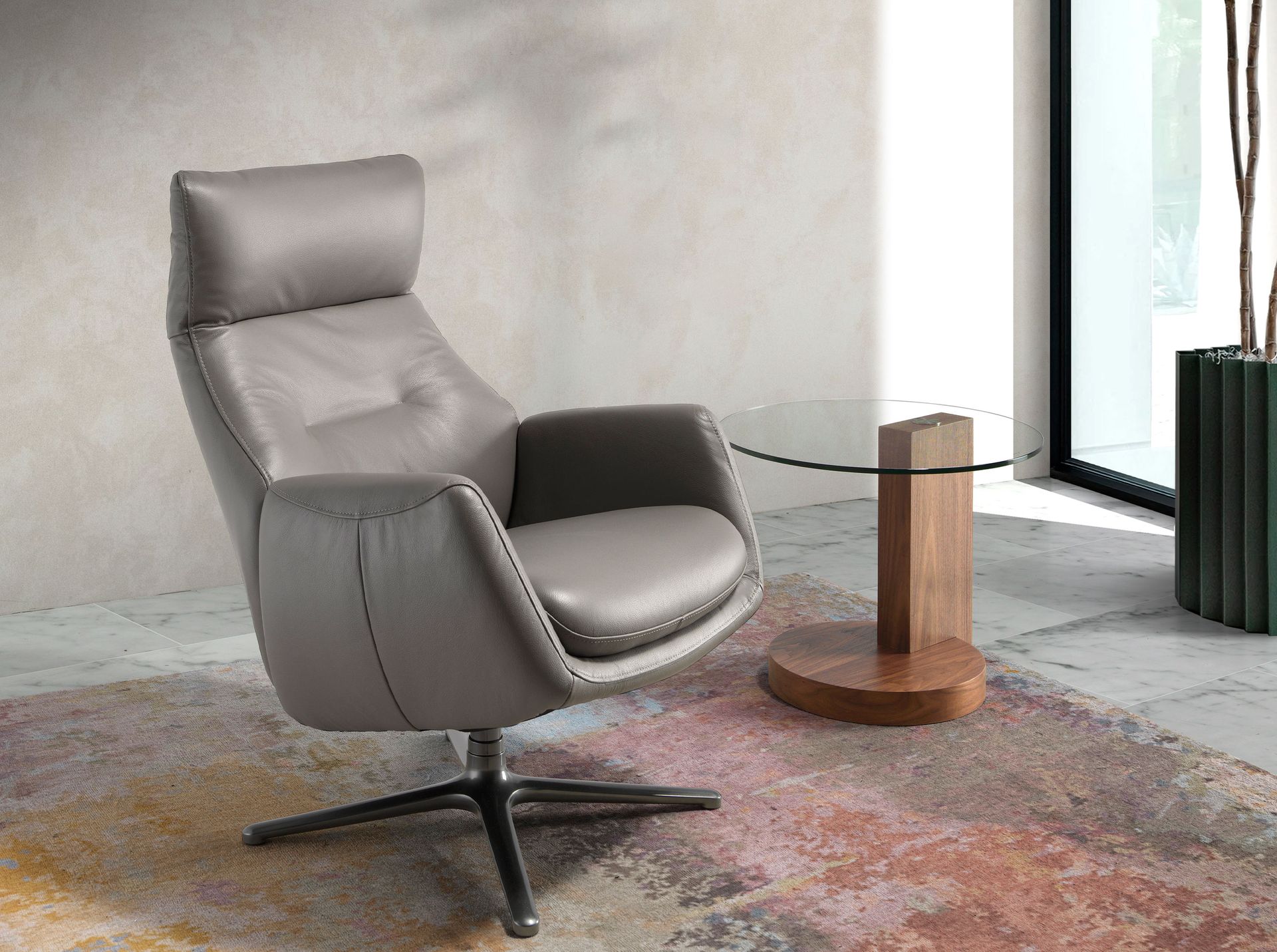 Стол Personal — достойный представитель одноименной коллекции испанского бренда Angel Cerda. Ассиметричный дизайн в сочетании с понятными геометрическими формами непременно привлечет внимание своей изысканностью и одновременно простотой! Такое изделие гармонично впишется как в классический интерьер, так и в современный. Конструкция без острых углов и небольшие габариты позволяют экспериментировать с местом размещения. Он может использоваться в качестве прикроватного или приставного столика в гостиной, а также быть стойкой для телефона и ключей в прихожей. Столешница круглой формы выполнена из закаленного стекла. Она прочно закреплена на стойке, выполненной из МДФ облицованного шпоном ореха в виде параллелограмма. Устойчивость конструкции придает круглое основание, буквально врезанное в прямоугольную стойку. Размеры стола — 60х48 (ширина, высота). Вес — 16 кг. Поставляется в разобранном виде. Сборка осуществляется согласно приложенной инструкции. Также в коллекции Personal имеется прямоугольная тумбочка под ТВ.