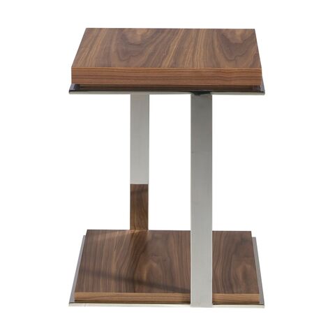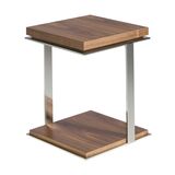 Столик журнальный MH1306 от фабрики Angel Cerda – минимализм и польза при скромных габаритах. Столик журнальный MH1306 с первого взгляда убеждает в том, что будет полезен в домашнем интерьере. Его компактный размер – это однозначный плюс, если знаешь как его использовать. Столик легко приставить к креслу или дивану, занять под предметы интерьера (фоторамки, статуэтки), использовать в паре с большим обеденным столом. Столик имеет квадратную форму с шириной грани 45 см. Столешница и нижняя полка сделаны из МДФ и шпона орехового дерева. Этот материал популярен в современных интерьерах, легко сочетается с разными цветами и материалами. Высота столешницы существенно больше, чем нижней полки. Это сделано для того, чтобы столик мог выдерживать высокие весовые нагрузки. Опора представляет собой сварную конструкцию из нержавеющей стали. Это две пластины, соединенные вертикальными перекладинами. Такая форма гарантирует устойчивость на любом напольном покрытии и надежность при эксплуатации. Высота опоры составляет 55 см. Внизу изделие имеет те же габариты, что и вверху. Масса столика составляет 16 кг. Он поставляется в собранном виде. Вместе с этой моделью гармонично будет смотреться большой журнальный стол 108A натуральный.