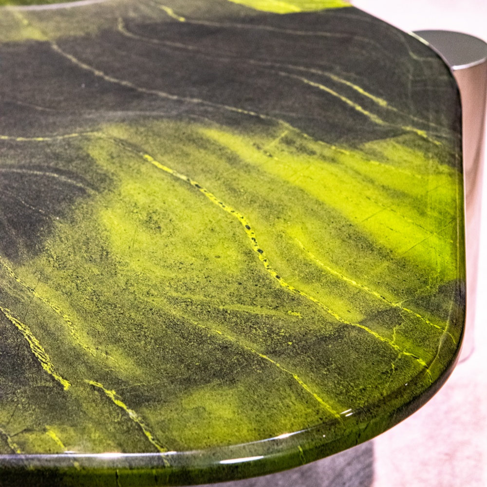 Округлая форма и современные материалы делают столы подходящими для разных стилей интерьера.