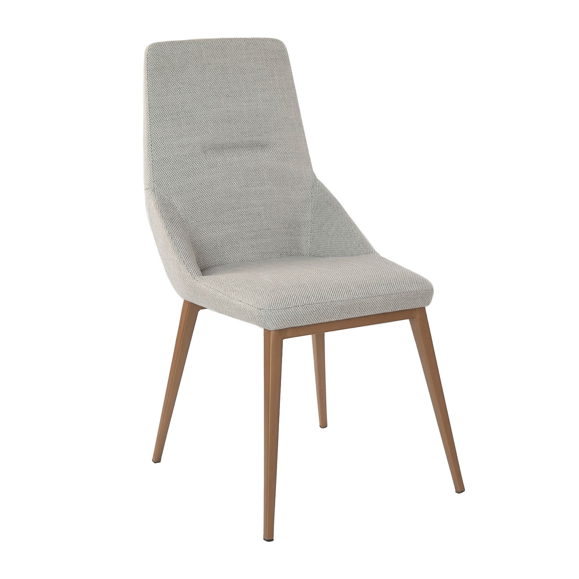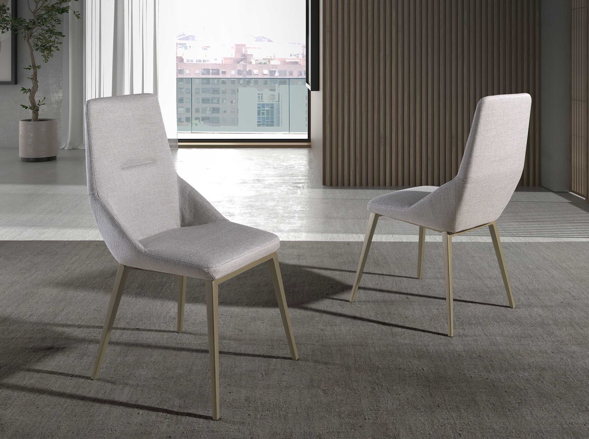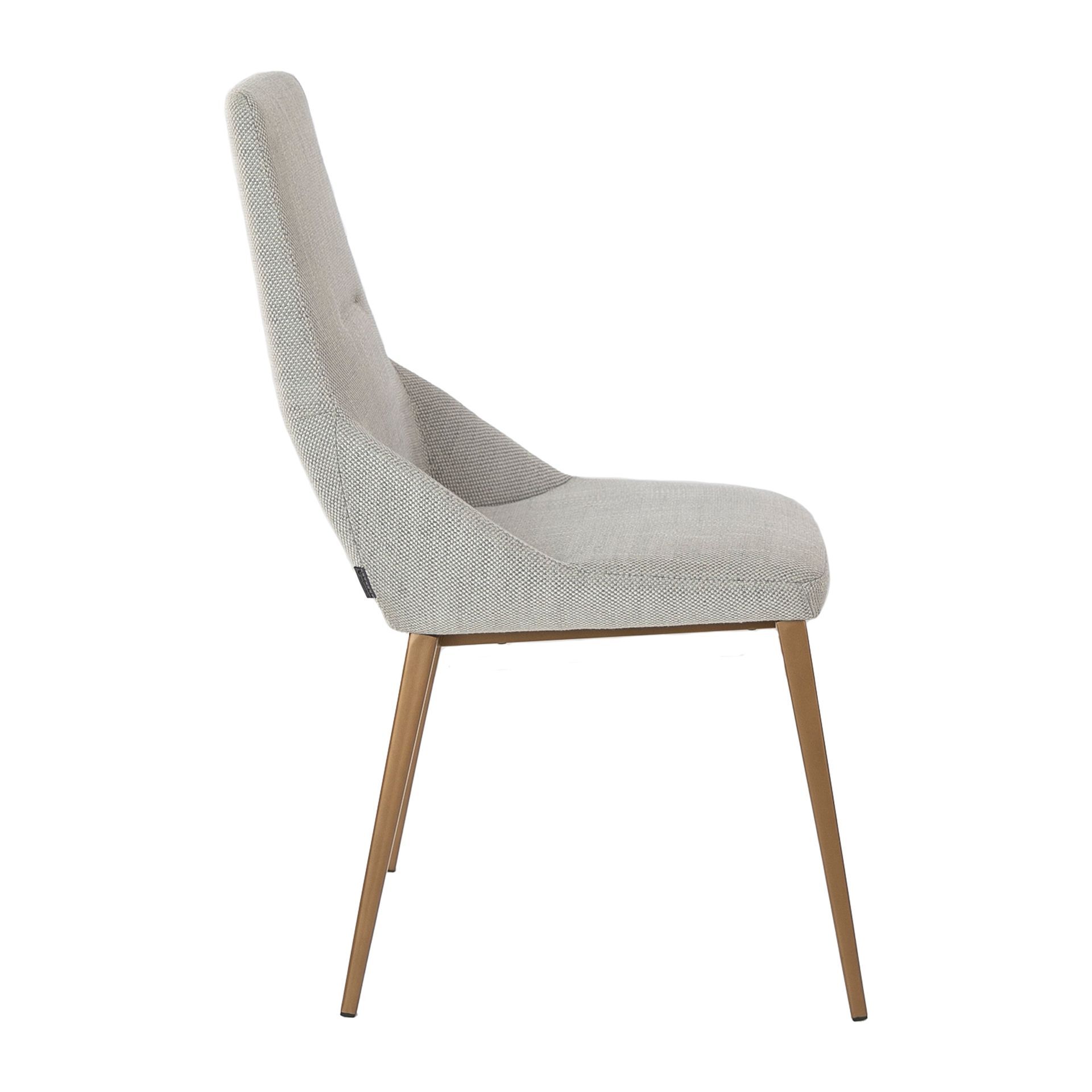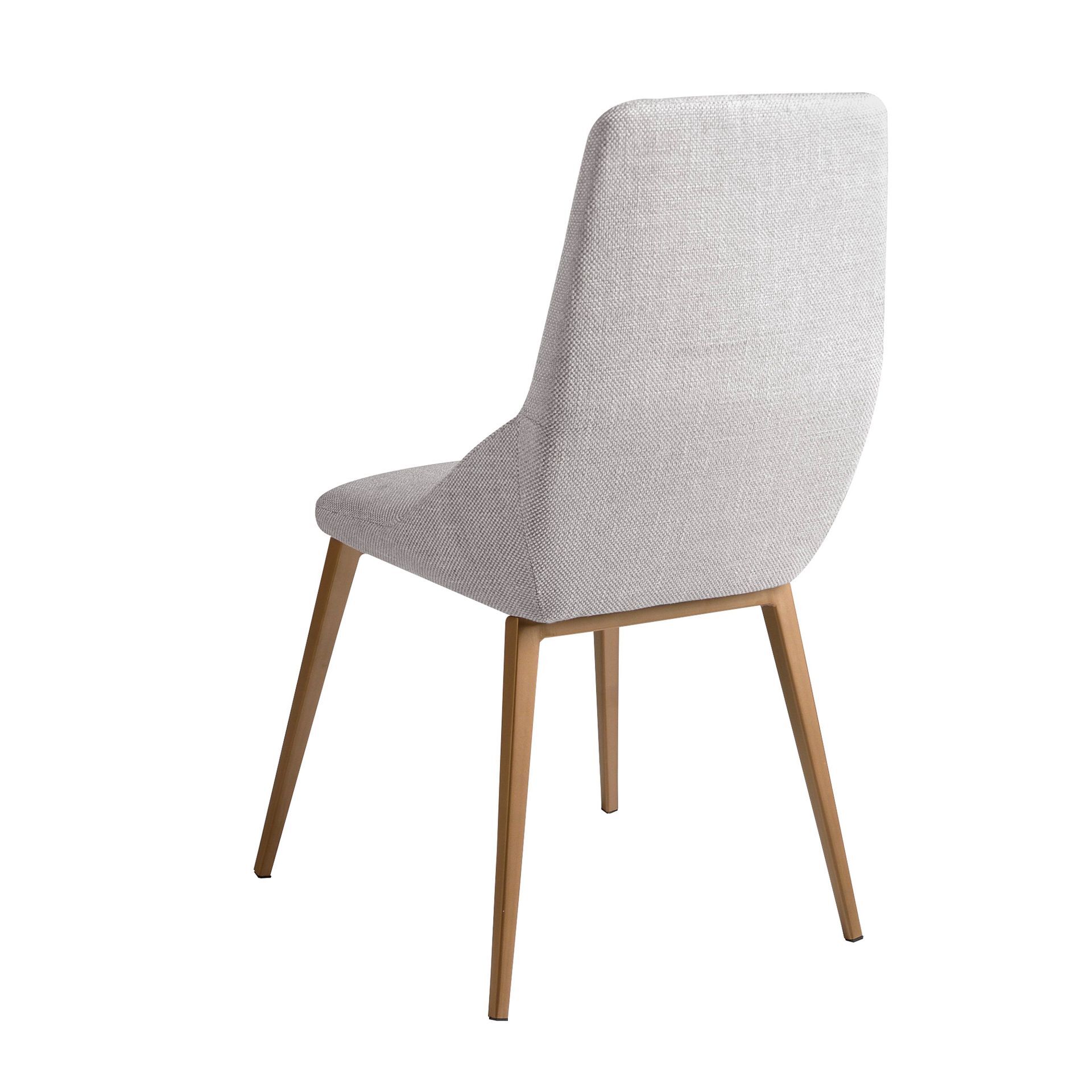 Кресло современного дизайна с сиденьем и спинкой, обитое светло-серой тканью. Его ножки из нержавеющей стали золотистого цвета с авангардной, но вневременной металлической отделкой сделают его обязательным для вашей кухни или столовой. Этот стул от Angel Cerdá сочетает в себе уникальный и личный стиль бренда, а также высочайший комфорт и стабильность благодаря высокому качеству обивки и оригинальной структуре ног. Ткань - TS-E.GrisClaro-LUNA94.