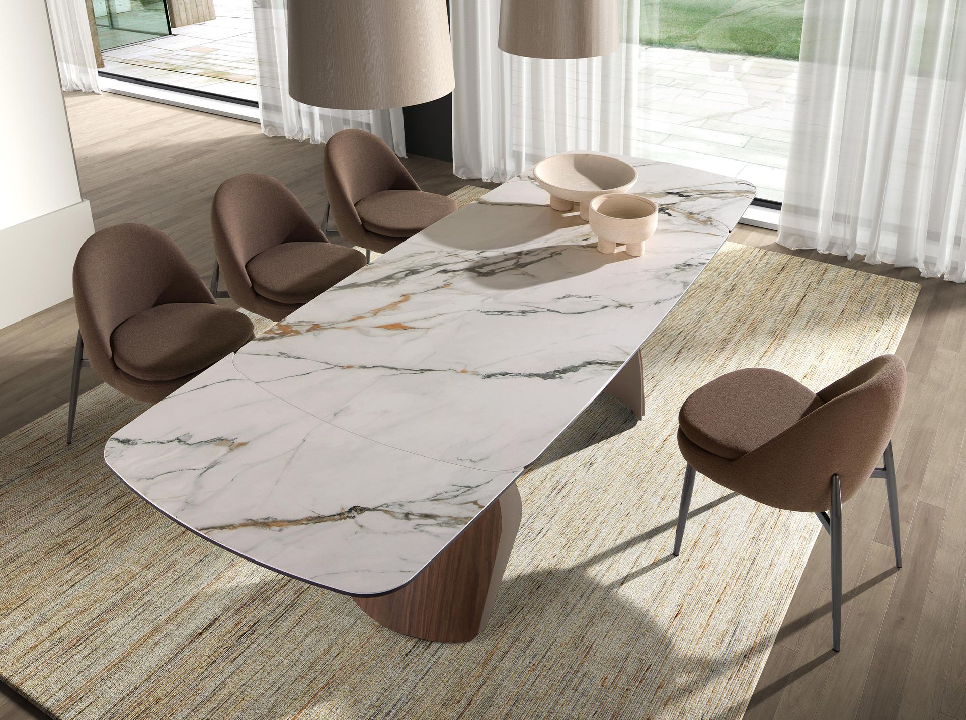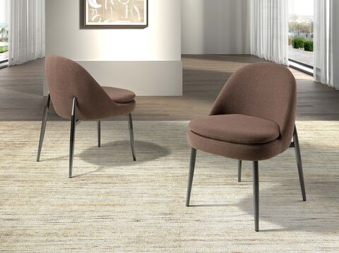 Современный дизайнерский стул с сиденьем и спинкой, обитыми темно-коричневой тканью. Ножки из нержавеющей стали с темным хромированным покрытием, сочетающие в себе авангардный и вневременной стиль, делают его незаменимым элементом вашей кухни или столовой. Этот стул Angel Cerdá сочетает в себе уникальный и индивидуальный стиль бренда с максимальным комфортом и устойчивостью благодаря высокому качеству обивки и оригинальной конструкции ножек.