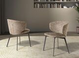 Современный дизайнерский стул с сиденьем и спинкой, обитыми тканью коричневого цвета с пятнистым рисунком. Его ножки из нержавеющей стали антрацитово-серого цвета, одновременно авангардные и вневременные по стилю, сделают его незаменимым элементом вашей кухни или столовой. Этот стул от Анхеля Серда сочетает в себе уникальный и индивидуальный стиль бренда с максимальным комфортом и устойчивостью благодаря высокому качеству обивки и оригинальной конструкции ножек.