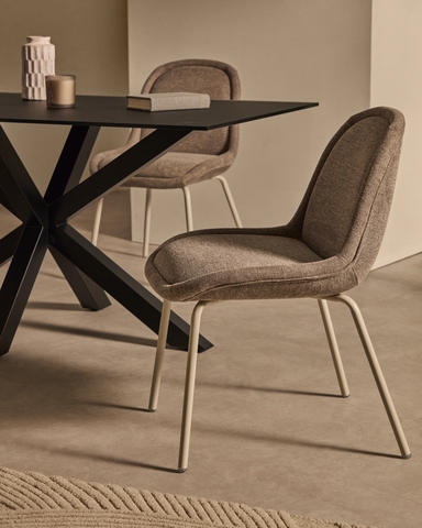 Стул Aimin из коричневой синели со стальными бежевыми ножками