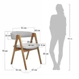 Высота стула делает его удобным для большинства стандартных столов. Ширина и глубина сиденья обеспечивают комфортное размещение, а расположение ножек под углом добавляет устойчивости и надёжности. Высота подлокотников оптимальна для удобного расположения рук.