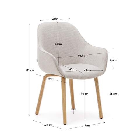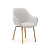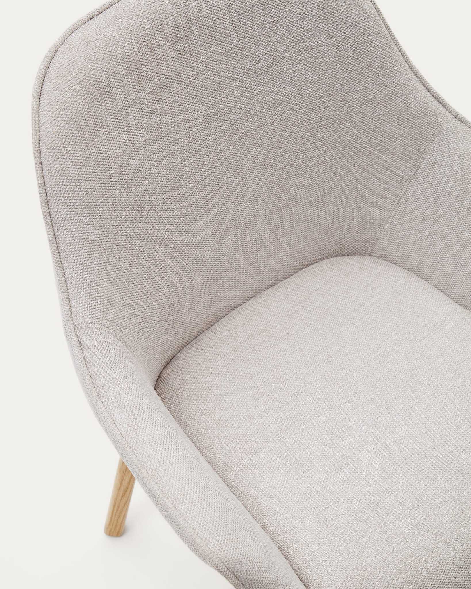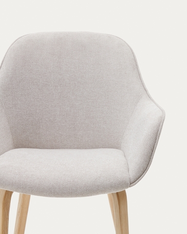 Стул Aleli из синели бежевого цвета с ножками из массива ясеня
