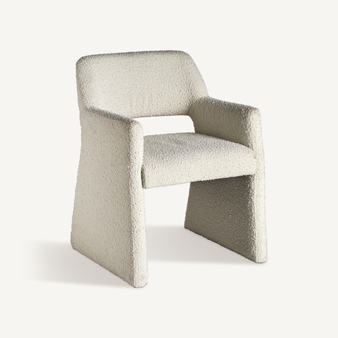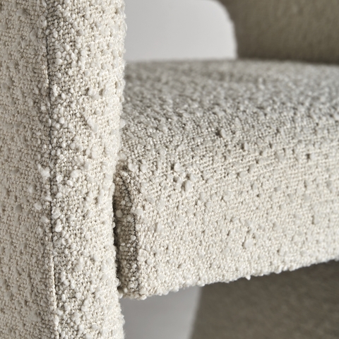 Кресло Alvra, обитое хлопковой букле кремового цвета, добавляет текстуру и мягкость. Его каркас из МДФ и пенополиуретана обеспечивает комфорт и стиль ар-деко. Фирменный стиль VICAL проявляется в каждой детали. Ширина: 58 см, Глубина: 56 см, Высота: 79 см